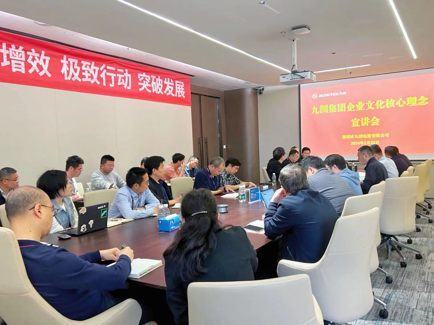 2月23日,公司總經理韓高典開展企業文化核心理念宣講會,詳細解讀了企業文化核心體系的內涵以及具體行為描述,帶頭推進九洲文化理念的普及和覆蓋。