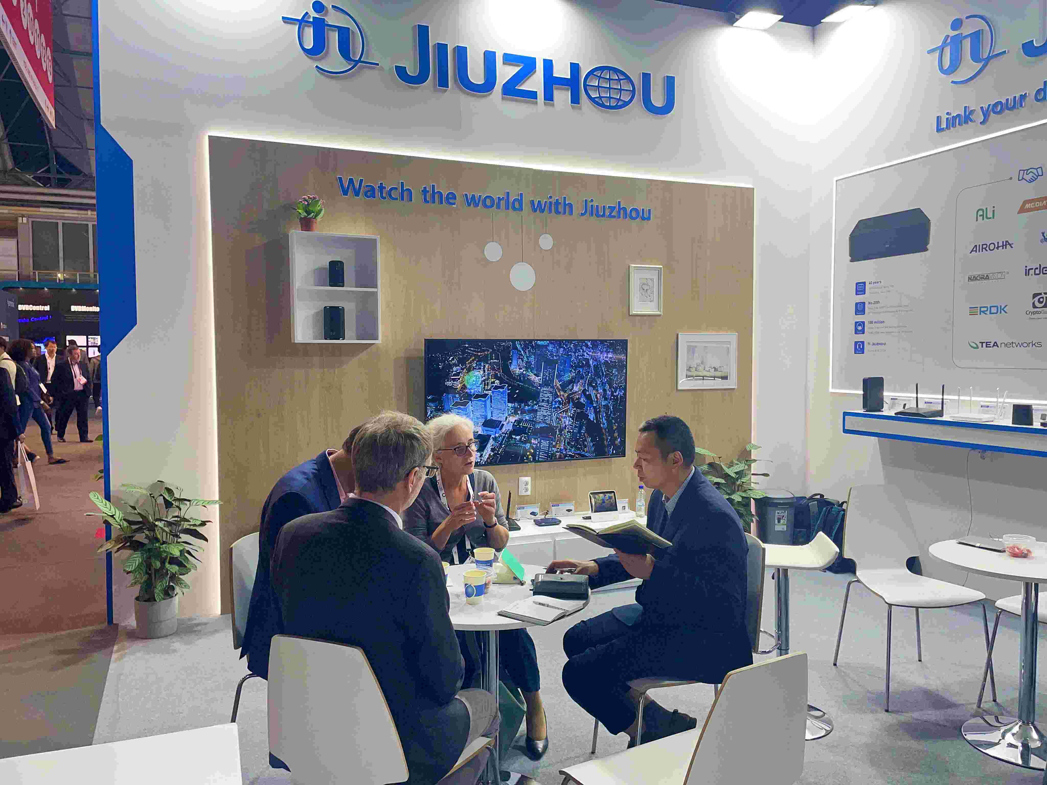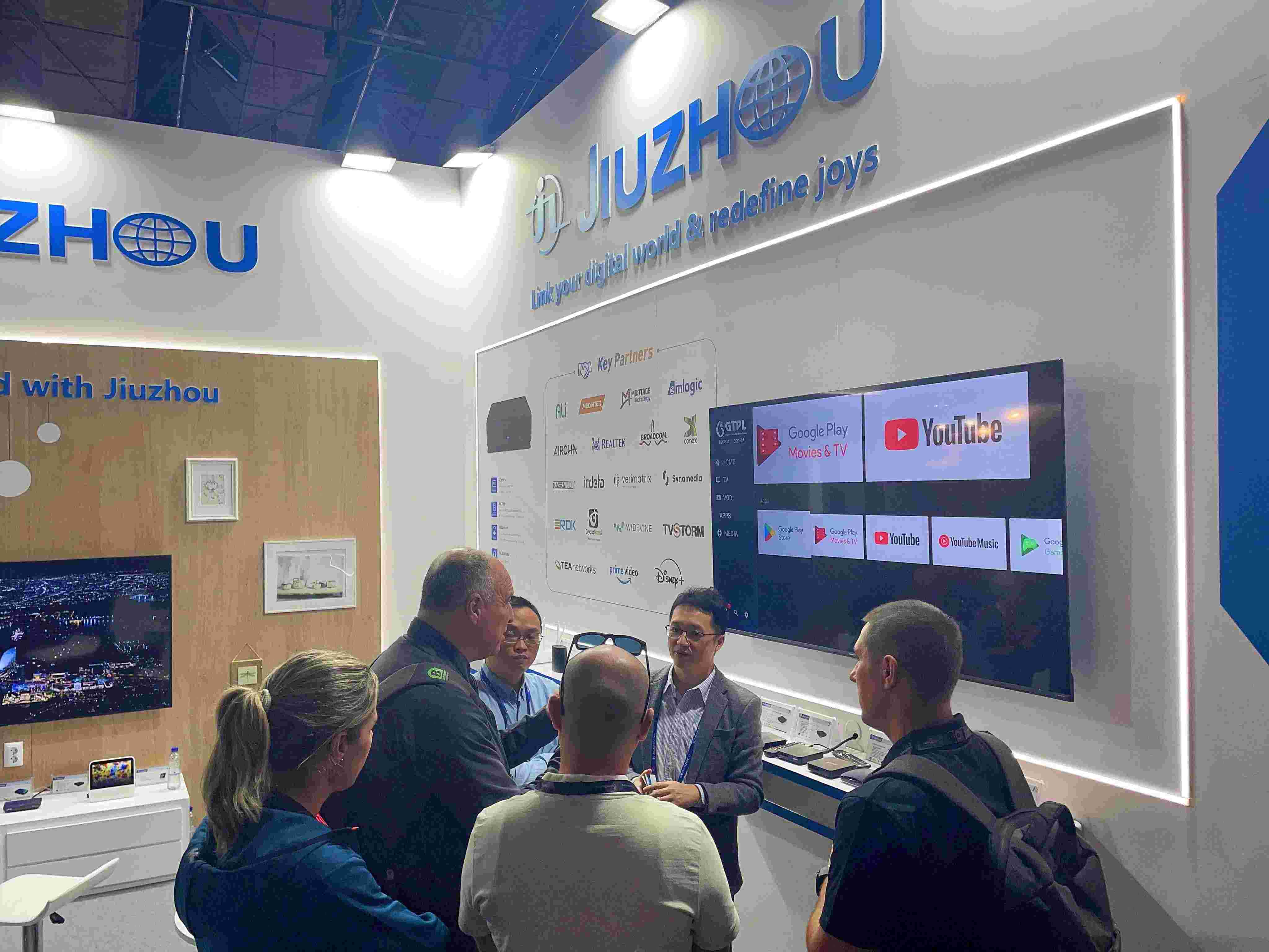 深圳九洲電器作為全球領(lǐng)先的數(shù)字音視頻融合智能終端提供商,本次展會公司總經(jīng)理韓高典親自帶隊遠赴荷蘭,參展的產(chǎn)品不僅有Android TV 智能機頂盒,RDK機頂盒,5G CPE,WiFi-6路由器等專業(yè)級數(shù)字終端產(chǎn)品,還有8k超高清機頂盒和智能音箱等新品亮相,向廣大觀眾展示了多維度、多功能的智慧融合終端解決方案。