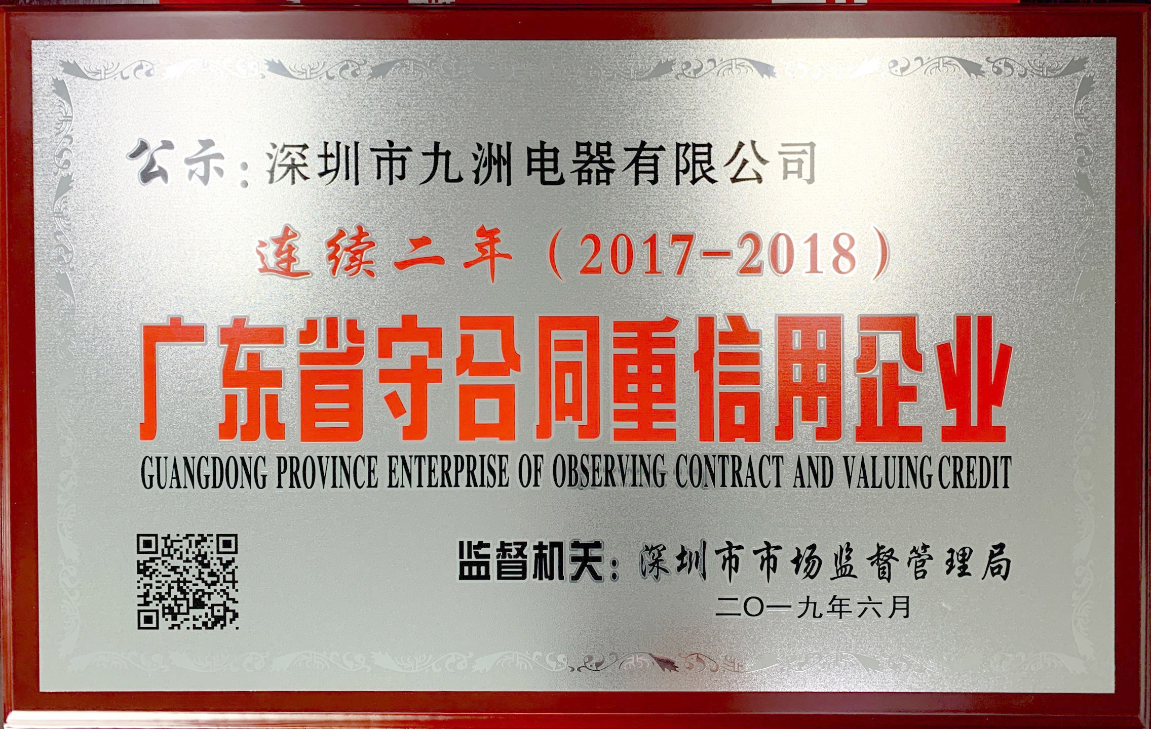 深圳九洲電器作為一家高新技術企業,始終堅持把“守合同、重信用”視為企業經營發展的根本,且在誠信建設、合同管理、守信經營等方面不斷完善,打造誠信經營品牌,奠定誠信社會基石,發揮誠信標桿企業的作用,為市場誠信經營良好秩序貢獻一份力量。在行業內依托產品技術的創新,以及服務質量的提升,從而贏得客戶以及社會各行業的高度信賴。