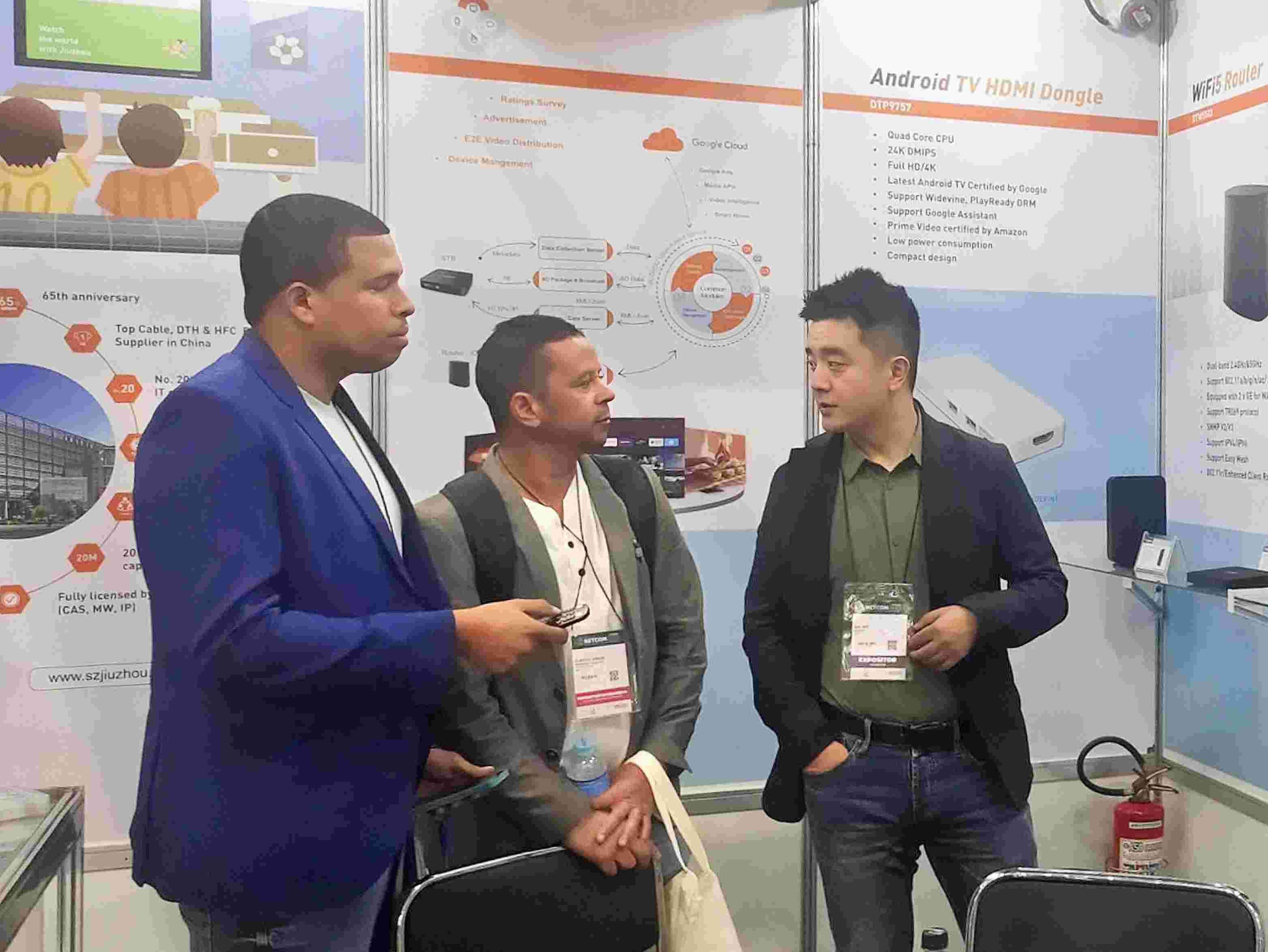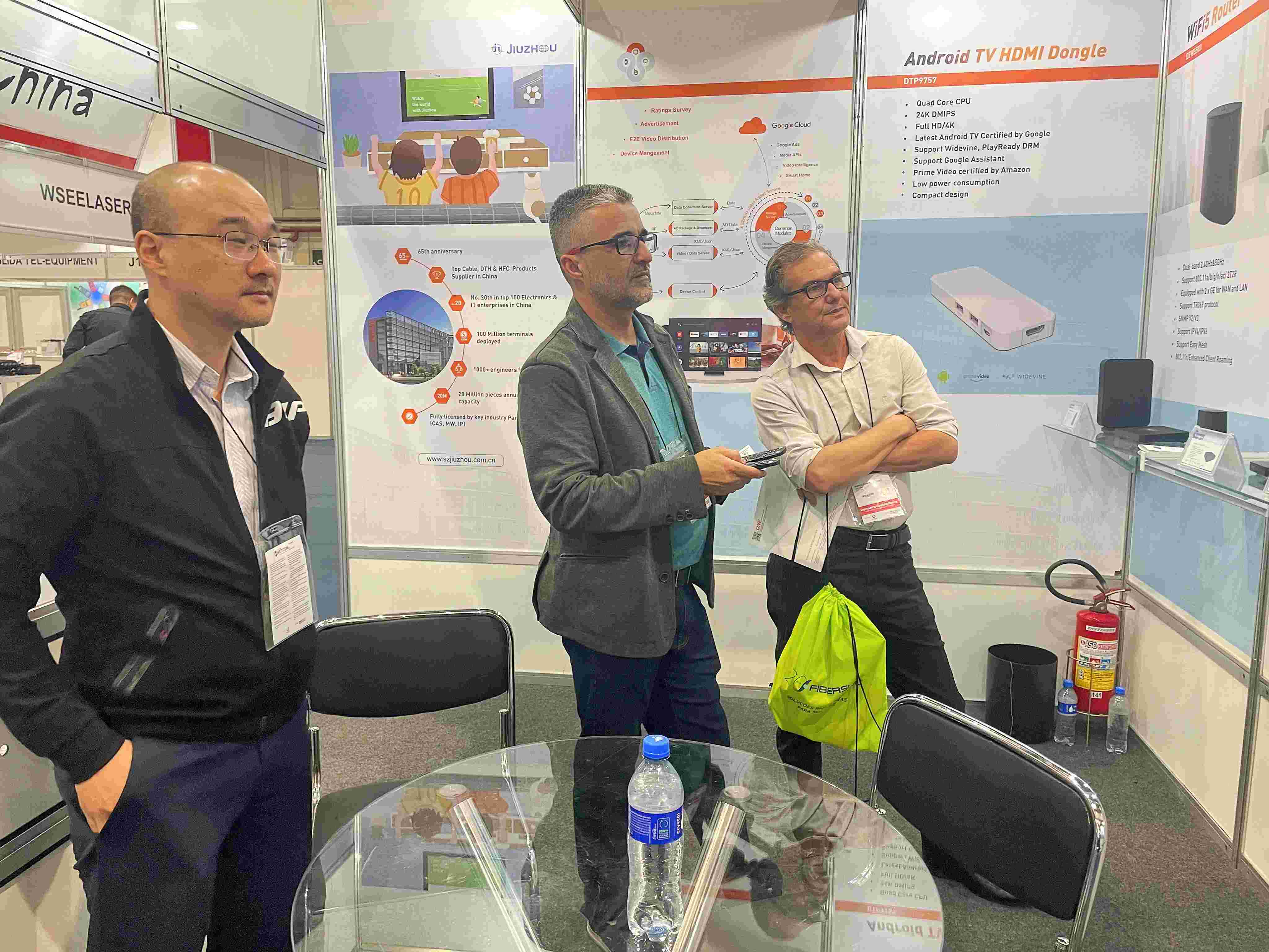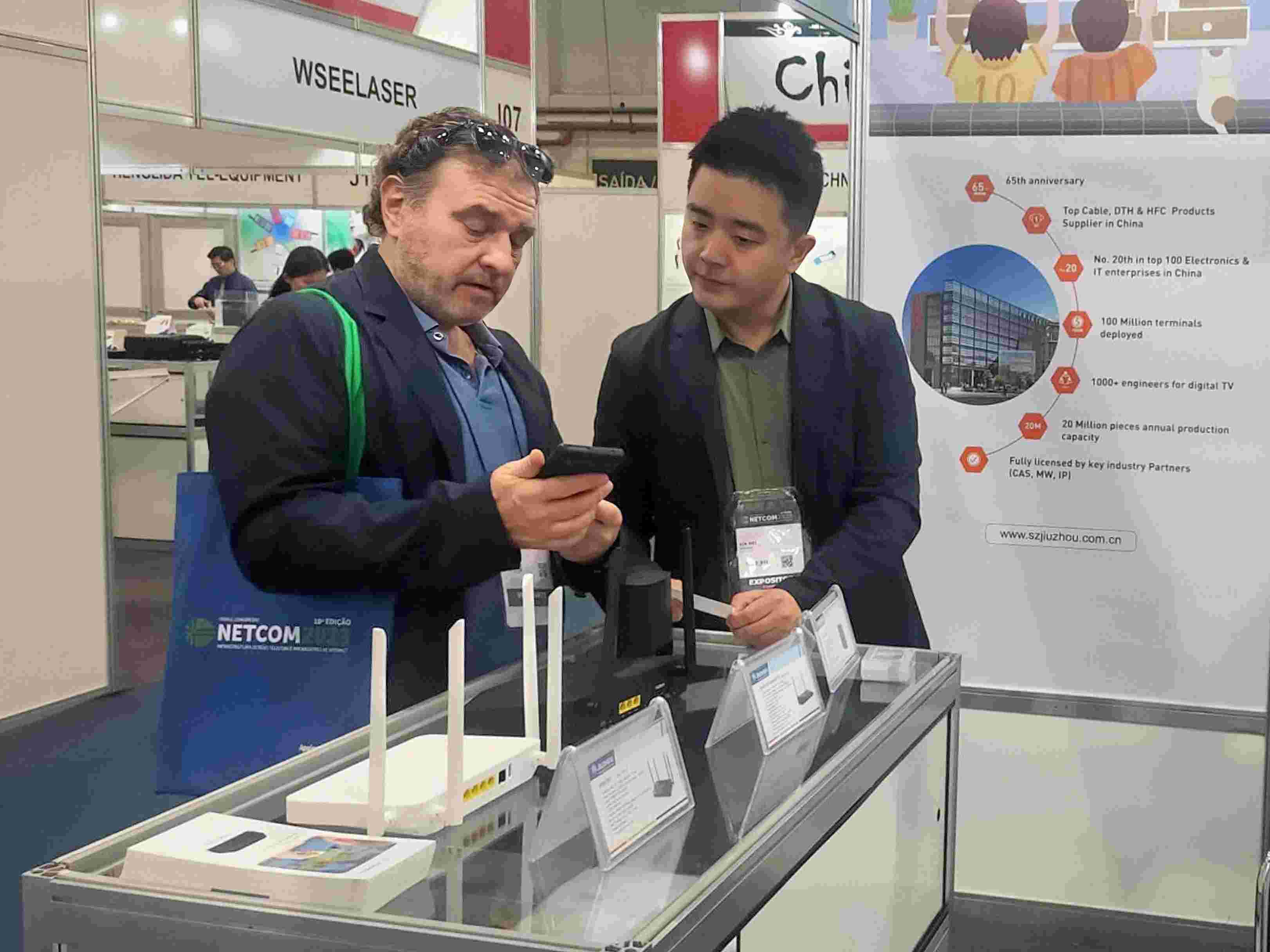 繼6月參加新加坡亞洲科技展后,深圳九洲電器數字電視團隊又馬不停蹄地遠赴巴西,參加NETCOM 2023。本次展會,深圳九洲電器展臺集中展出5G CPE,Wi-Fi 6路由器,GPON&OTT和家庭網關等多款智能終端產品及整體解決方案,吸引了諸多關注。