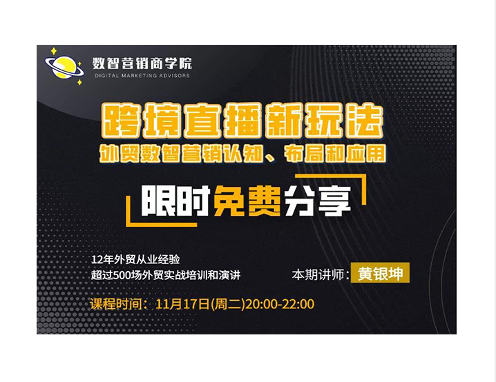 【免費跨境直播培訓來了】九洲數智營銷商學院與你分享“跨境直播新玩法” 破局2020