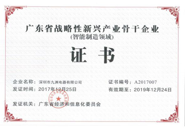 經(jīng)形式審查和專家評審,深圳九洲電器以在數(shù)字音視頻產(chǎn)業(yè)和技術(shù)開發(fā)的數(shù)字化生產(chǎn)運營與管理、網(wǎng)絡(luò)化內(nèi)外部服務(wù)系統(tǒng)平臺優(yōu)勢,以及數(shù)字衛(wèi)星、地面、有線機頂盒制造行業(yè)的領(lǐng)先地位,從全省16個地市43家優(yōu)秀企業(yè)中脫穎而出,被認定為“2017年省戰(zhàn)略性新興產(chǎn)業(yè)骨干(培育)企業(yè)(智能制造領(lǐng)域)”10家骨干企業(yè)。