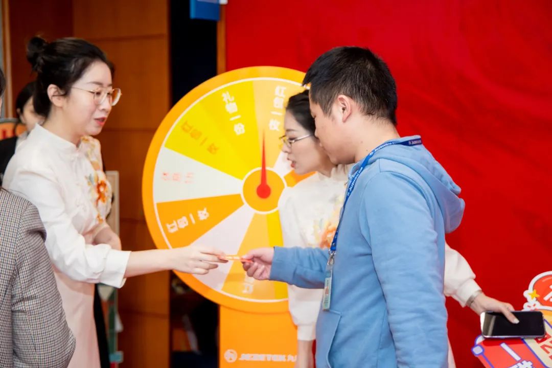 深九同仁們在主背景板處拍照打卡,留下幸福瞬間,并陸續在印有帆船形狀,寓意揚帆起航的簽到板上簽名,代表著九洲人在新的一年攜手并進,乘風破浪!