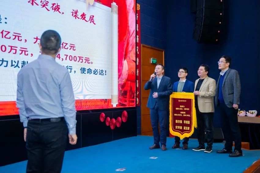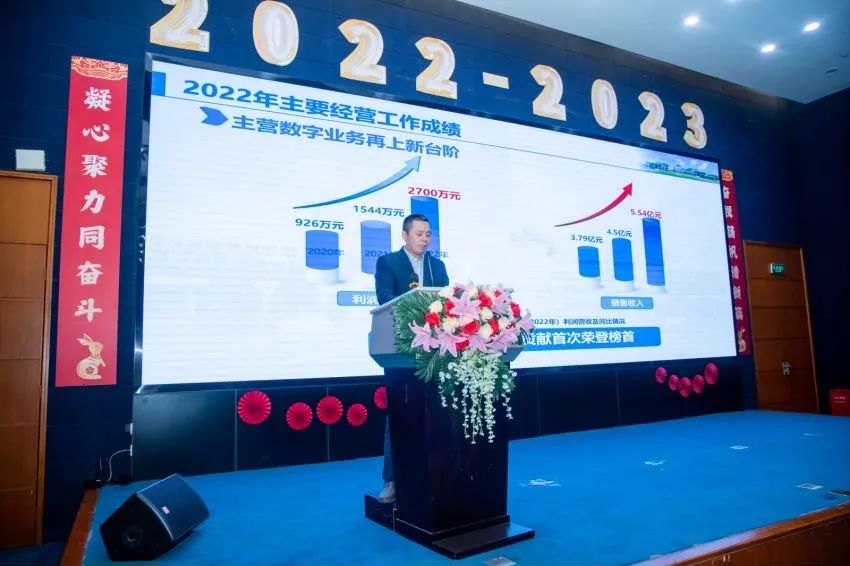 會上,深圳九洲電器董事長蘭盈杰發表了以《點燃夢想,一起成功》為主旨的重要講話。蘭董事長指出,我們用成功告別2022,用夢想點燃2023!2023年,公司將以“胸懷兩個市場,聚焦主航道,開辟新賽道,擴大數字業務、突破創新業務、抓住機會業務”為經營思路和策略,未來以“251”為發展目標,堅定信心、保持定力,想干事、敢干事、敢成事,上下同心者必勝,讓我們共赴山海,一起成功,早日實現“百億深九夢”!